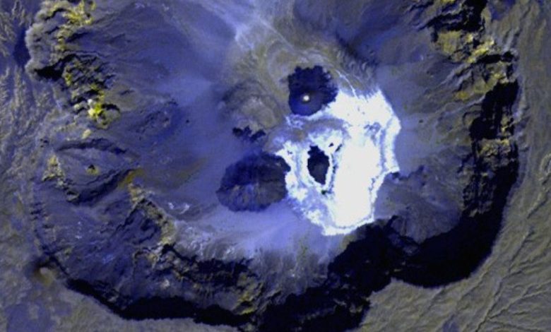 Космические спутники зафиксировали жутковатое природное явление в сердце пустыни Сахара. На снимках, сделанных из космоса, гигантский вулканический кратер удивительным образом напоминает человеческий череп. Этот призрачный лик, возникший на каменистой поверхности нашей планеты, был обнаружен в глубокой вулканической котловине Тру-о-Натрон, также известной среди местного населения как Дуун Орей, что означает "большая дыра".