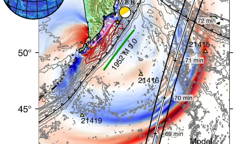 Используя информацию со спутника, а также с трёх буёв системы раннего предупреждения о цунами DART, исследователи смогли зафиксировать картину распространения и рассеяния волн, оказавшуюся сложнее, чем предполагалось ранее. Ключевое отличие от существующих моделей состоит в следующем. Ранее считалось, что крупные цунами распространяются как единое целое, то есть основная масса энергии движется единым компактным волновым фронтом. Однако данные SWOT показали, что волновой фронт распался (или подвергся дисперсии), образовав относительно крупную ведущую волну, за которой следовали более мелкие вторичные волны.
