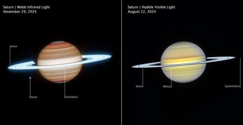 Телескопы «Джеймс Уэбб» и «Хаббл» объединили усилия, чтобы представить самый полный взгляд на Сатурн