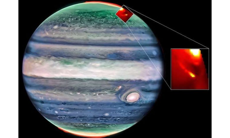Ученые обнаружили аномальные холодные пятна в полярном сиянии Юпитера