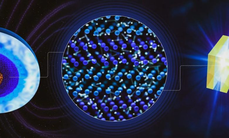 В ядрах ледяных гигантов, таких как Нептун и Уран, существуют экстремальные давление и температура, которые превращают воду в особую фазу, не встречающуюся в естественных условиях на Земле. Эта форма воды, известная как «сверхионный лёд», является разновидностью льда, однако, в отличие от обычного, она раскалённо горячая и имеет чёрный цвет. Учёные десятилетиями предполагали, что именно этот сверхионный лёд в недрах планет ответственен за странные, смещённые магнитные поля, которые зафиксировал зонд «Вояджер-2» при пролёте мимо Нептуна и Урана.